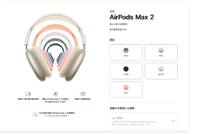 AirPods Max 2 售價 $17,990、台灣上市時間未定